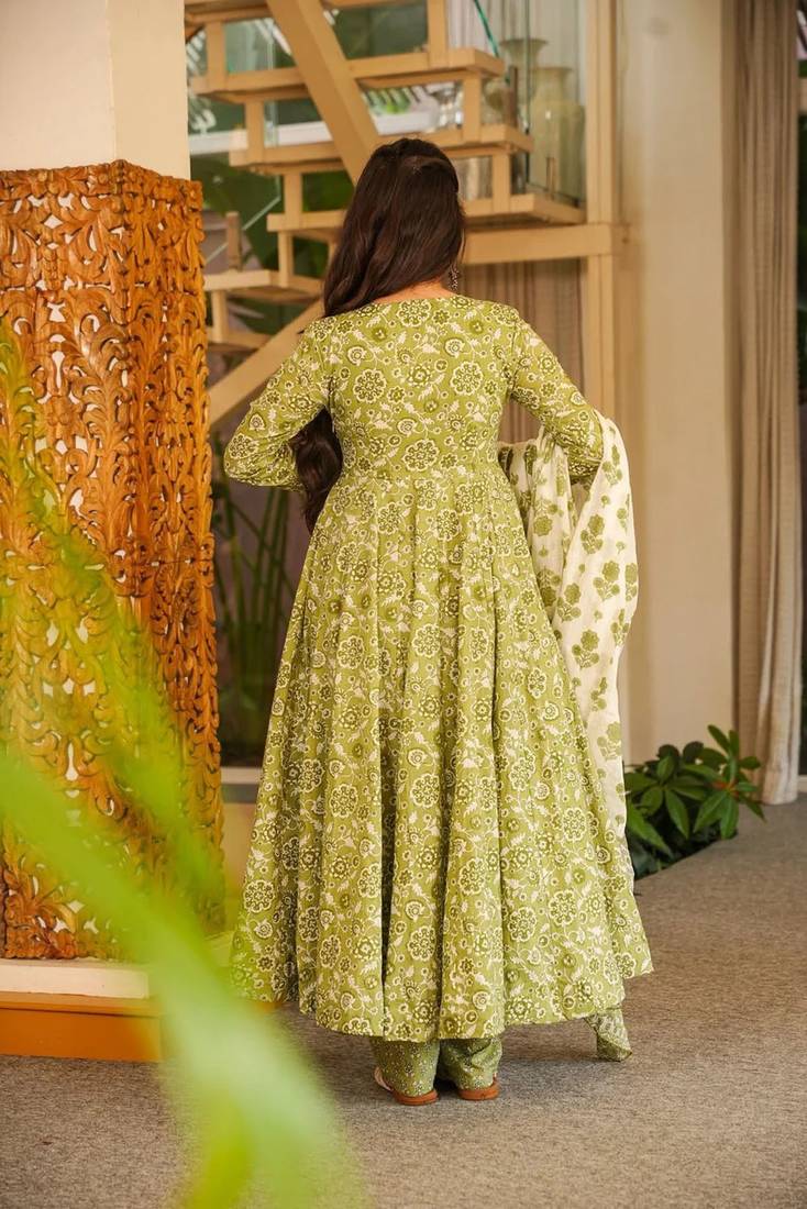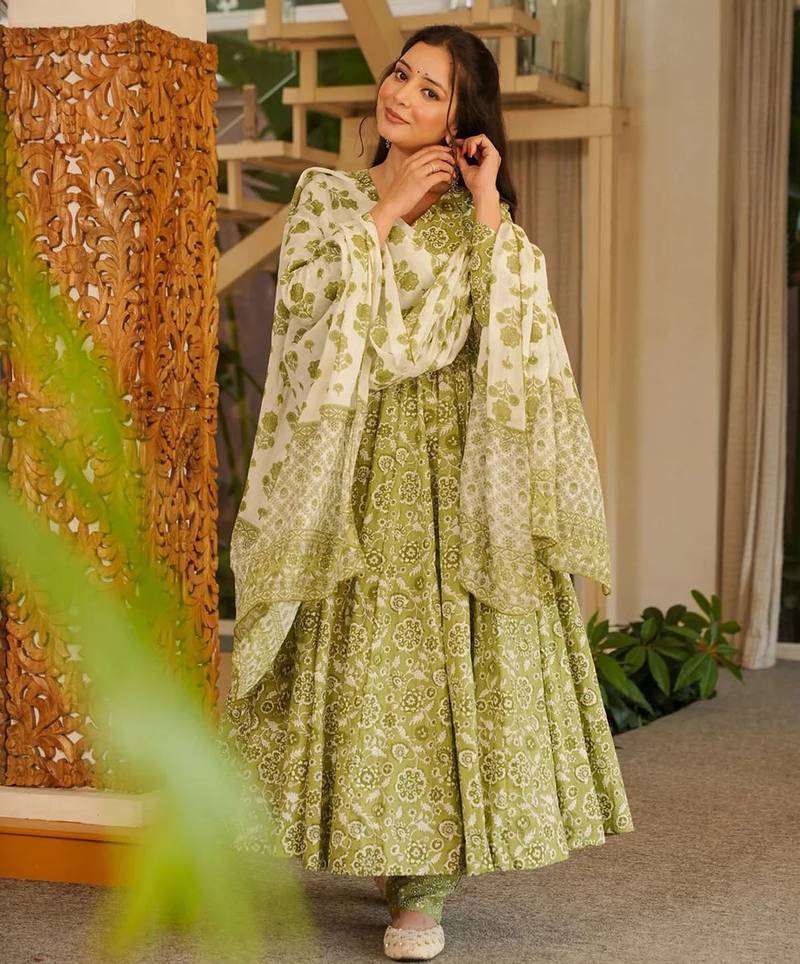 | Product Name | Pista Color Cotton Silk Fabric Designer Digital Printed Smart Anarkali Dress | |