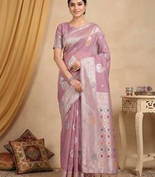 Purple color linen cotton fabric woven designer partywear saree