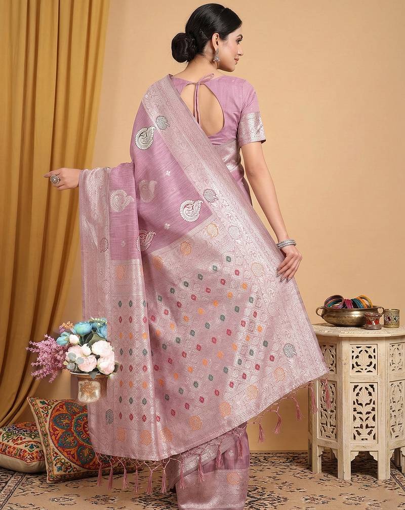 | Product Name | Purple Color Linen Cotton Fabric Woven Designer Partywear Saree | |