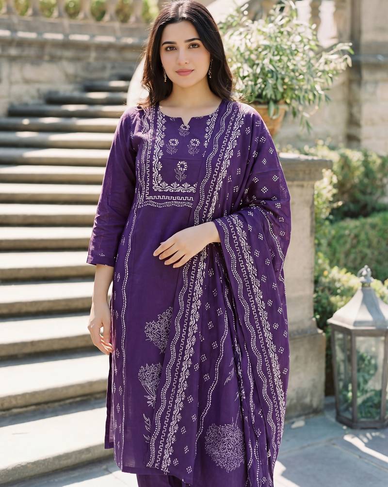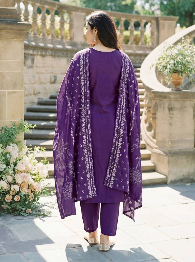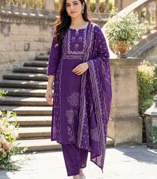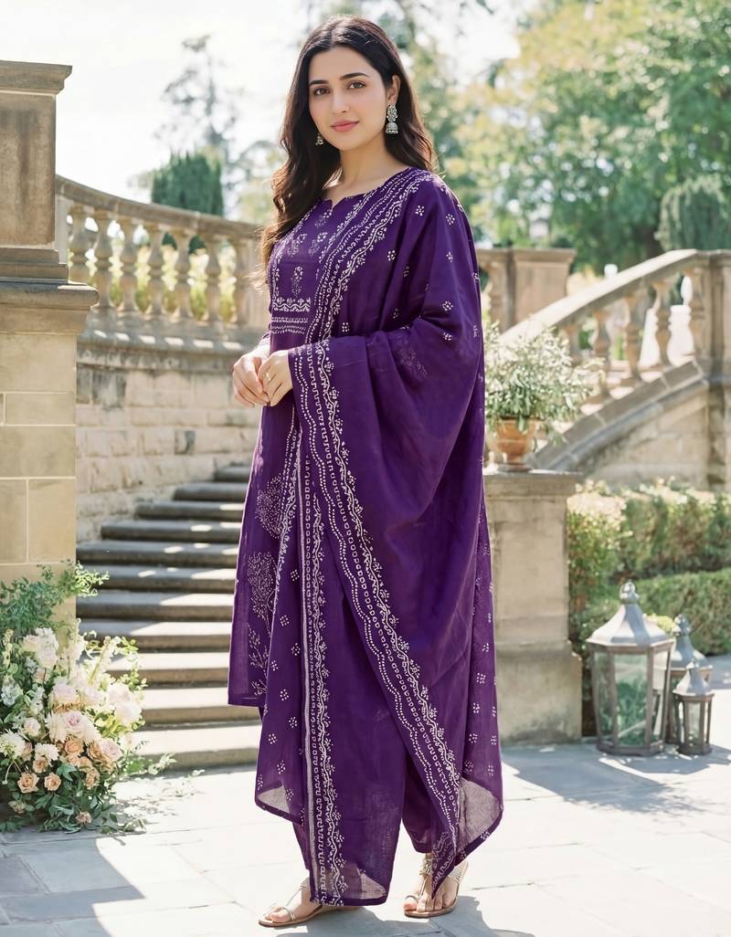 | Product Name | Purple Color Muslin Fabric Hand Printed Partywear Suit | |