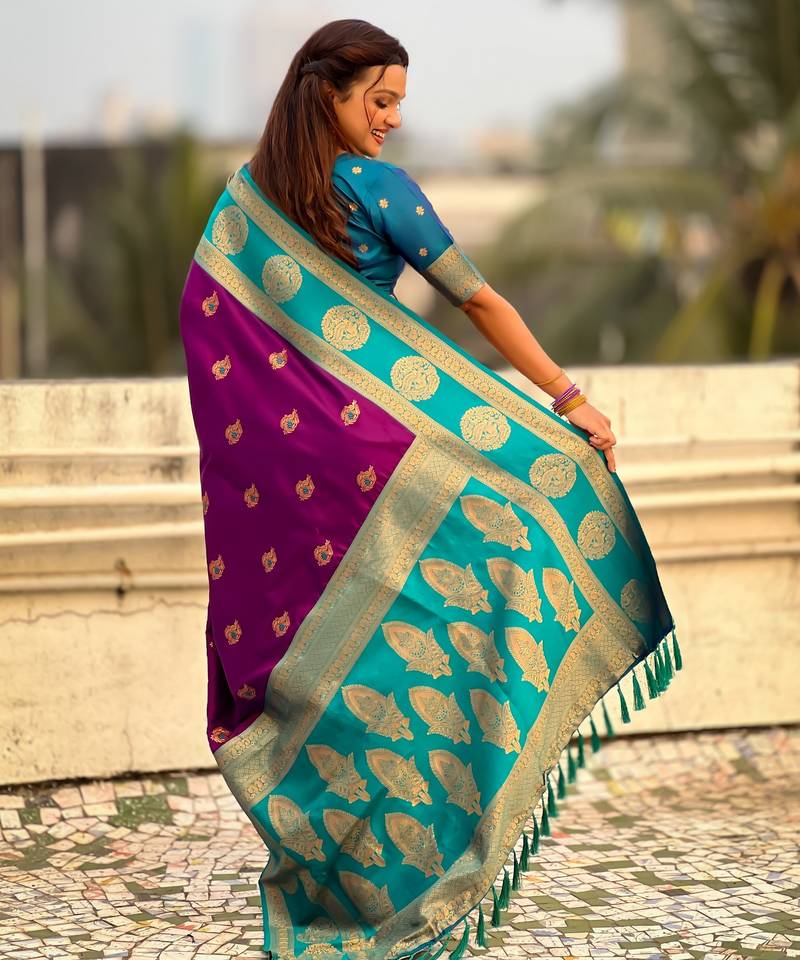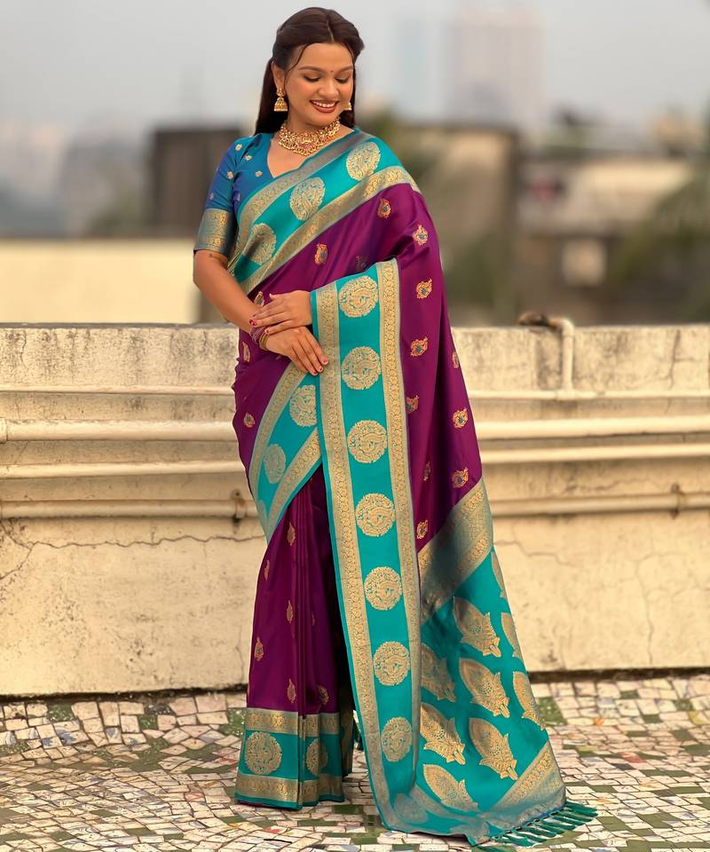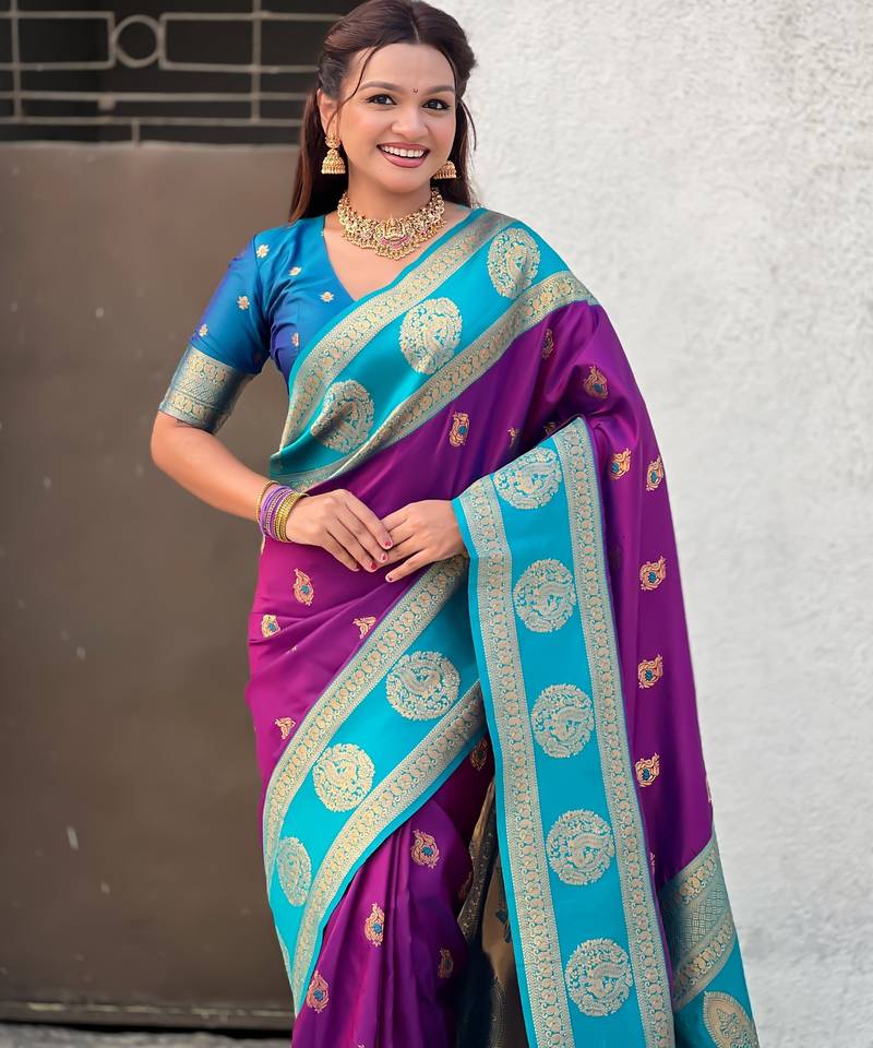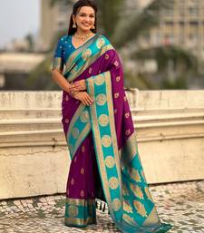 Purple color soft silk fabric woven designer girlie rich look saree