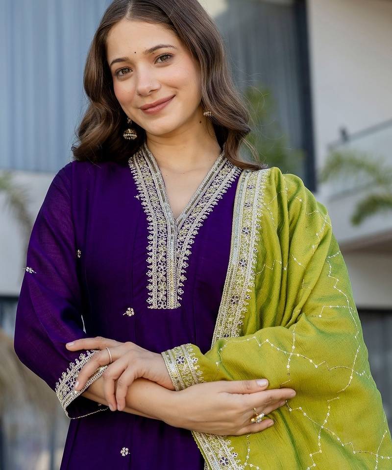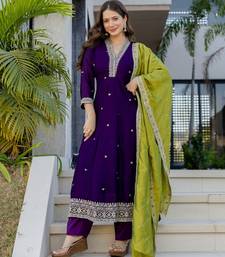 Purple color vichitra silk fabric designer embroidery work ethnic ceremonial suit