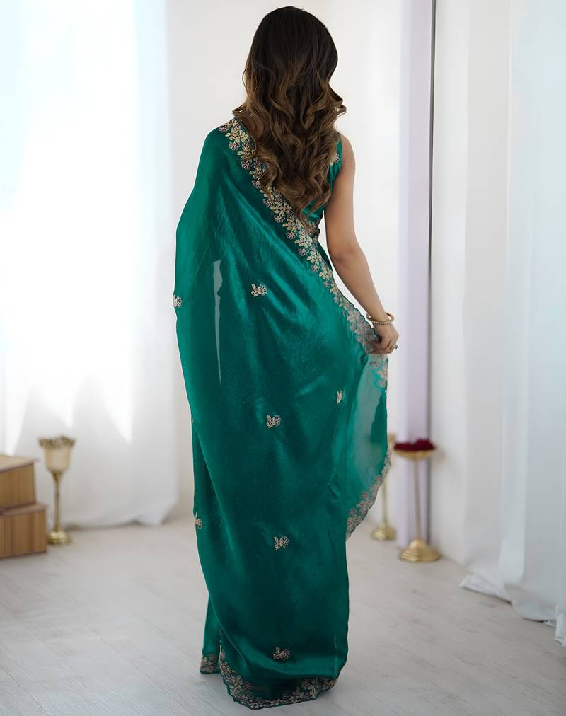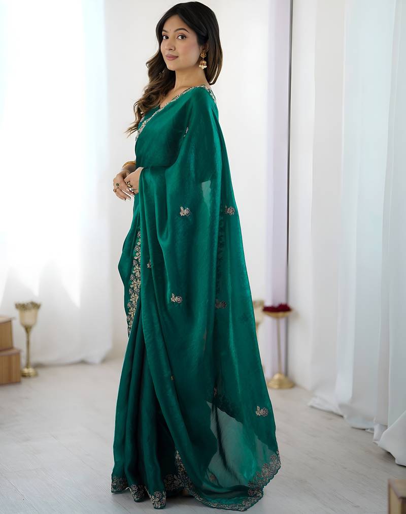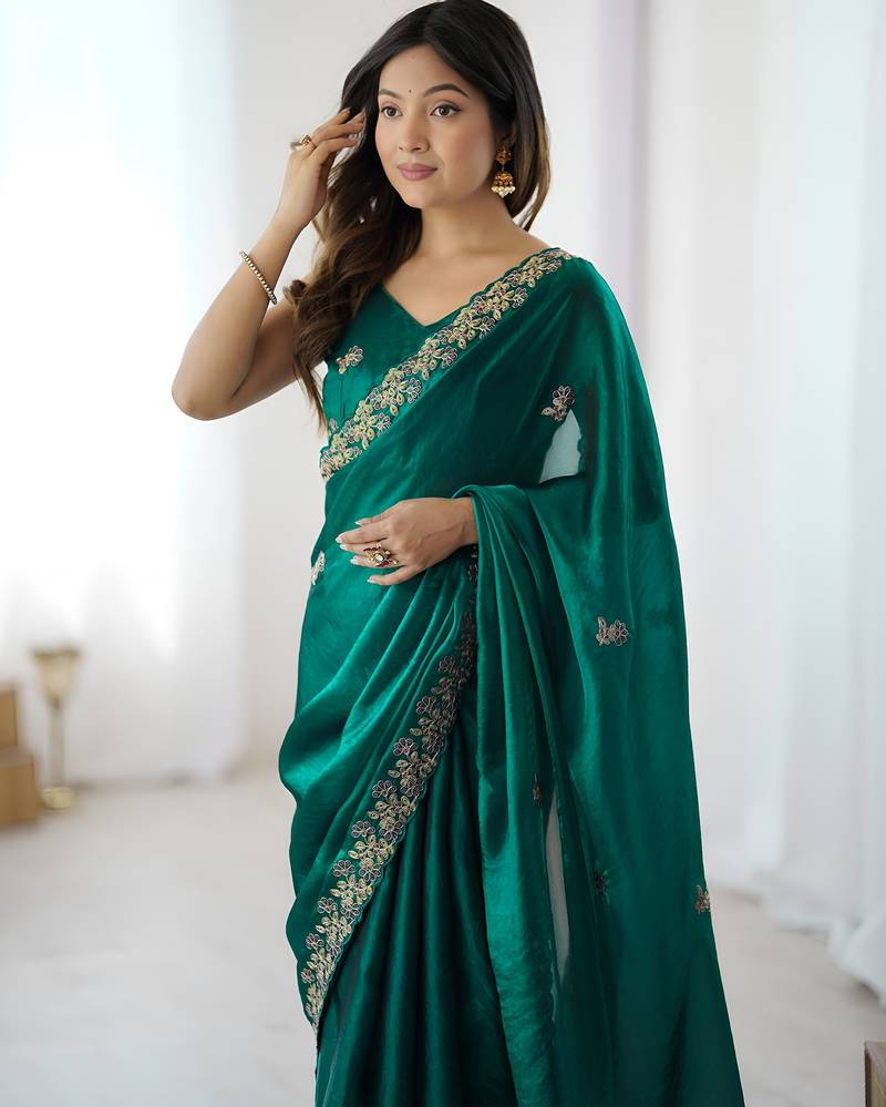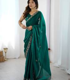Rama color fendy satin silk fabric designer bollywood style girlie saree