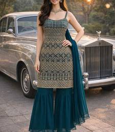 Rama color georgette fabric designer embroidery work ceremonial sharara dress