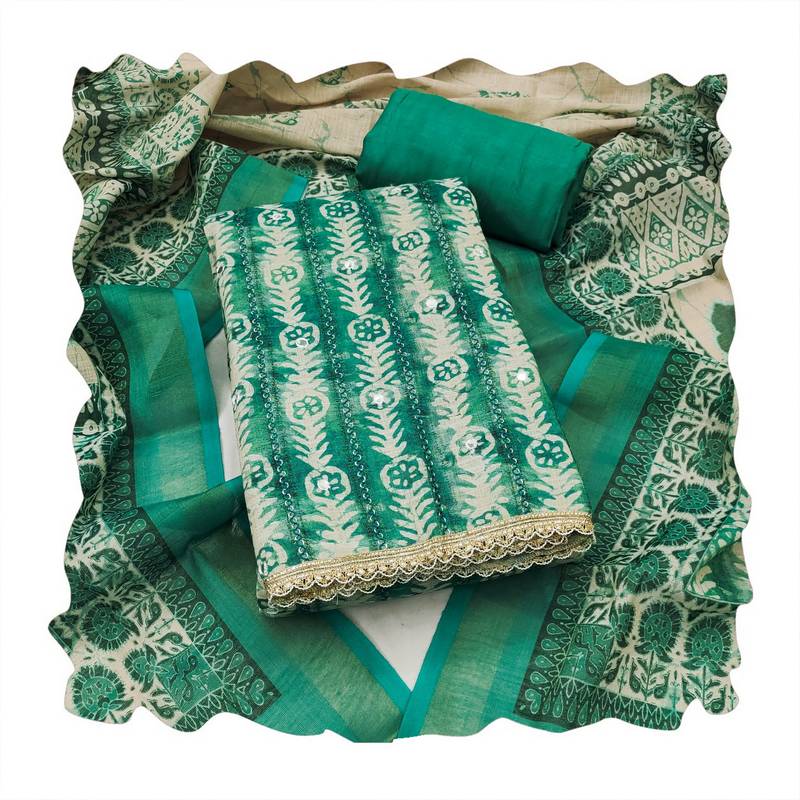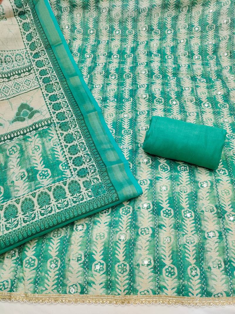 Sea green color beautiful lilen cotton smart and ethnic salwar suit for trendy girls unstitched