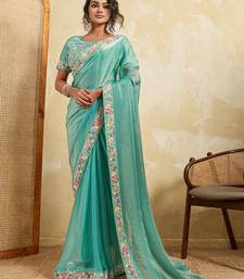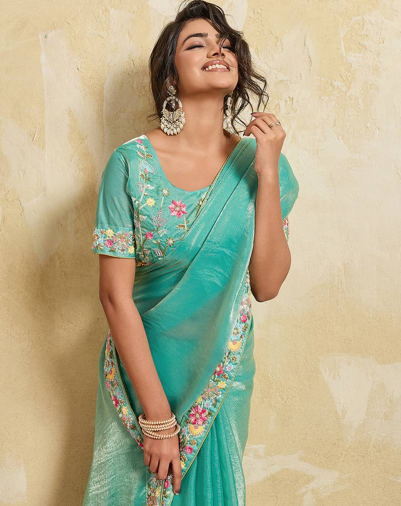 Sea green color designer fendy chiffon fabric beautiful embroidered saree
