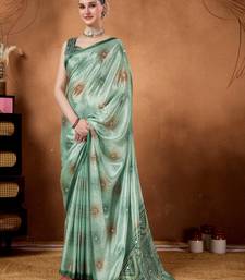 Sea green color satin silk fabric ready to wear festive rich bandhani saree