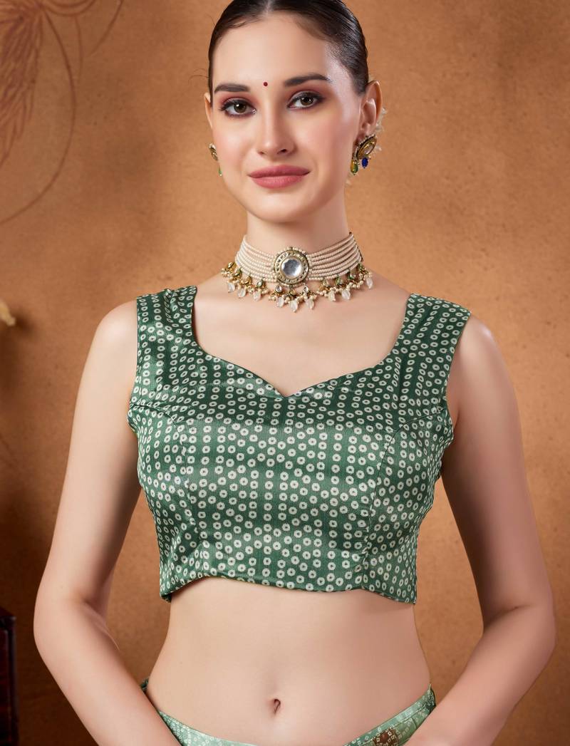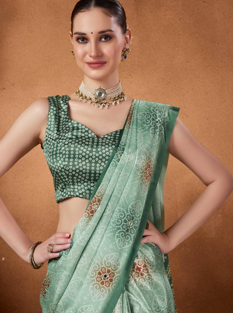 | Product Name | Sea Green Color Satin Silk Fabric Ready To Wear Festive Rich Bandhani Saree | |
