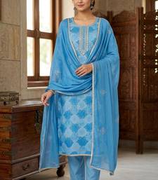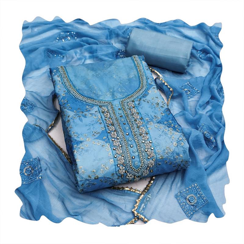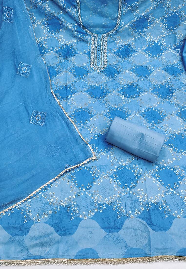 Sky blue color maslin fabric stylish partywear salwar kameez unstitched