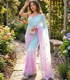 Sky blue-pink twin padding color pixel crush fabric smart and sophisticated girlie saree