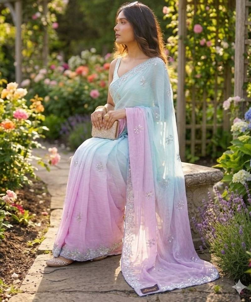 | Product Name | Sky Blue Pink Twin Padding Color Pixel Crush Fabric Smart And Sophisticated Girlie Saree | |