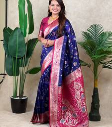 Voilet color banarasi silk fabric woven jari meenakari jaal designer ethnic partywear saree