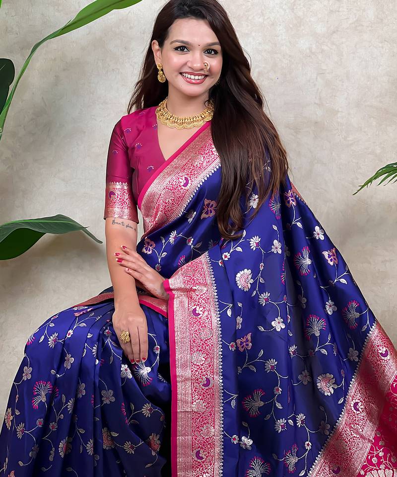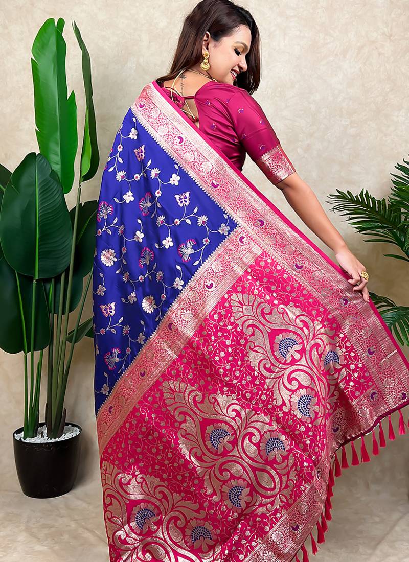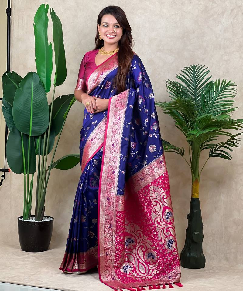 | Product Name | Voilet Color Banarasi Silk Fabric Woven Jari Meenakari Jaal Designer Ethnic Partywear Saree | |