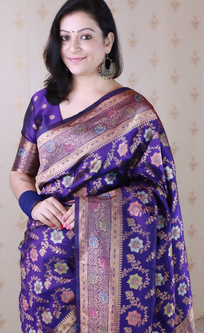 Voilet color banarasi silk saree for graceful traditional looks saree