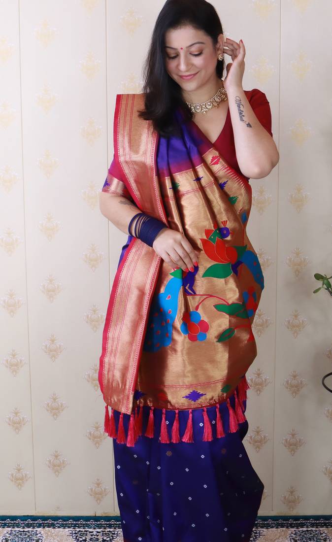 | Product Description | Garb These Party Wear Saree In Fine Colored.These Saree And Blouse Is Fabricated On Soft Silk.Its Beautified With Weaving Bandhani Jari,Paithani Meenakari Pallu Designer. |