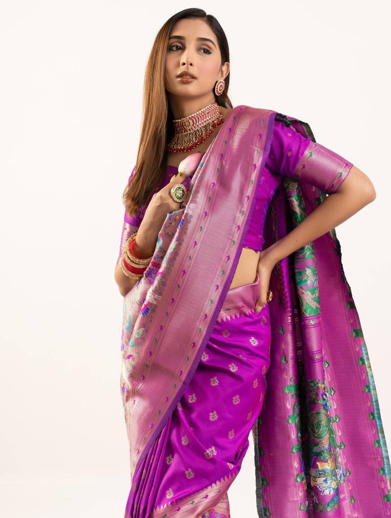 | Product Description | Looking These Festive Wear Saree In Fine Colored.These Saree And Blouse Is Fabricated On Banarasi Silk.Its Beautified With Woven Jari Designer Meenakari Rich Paithani Pallu. |
