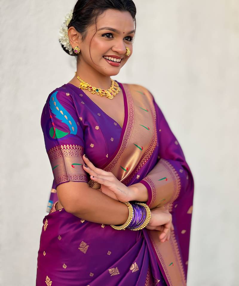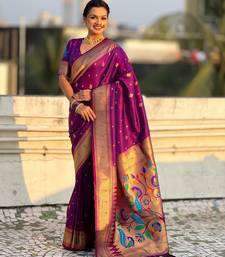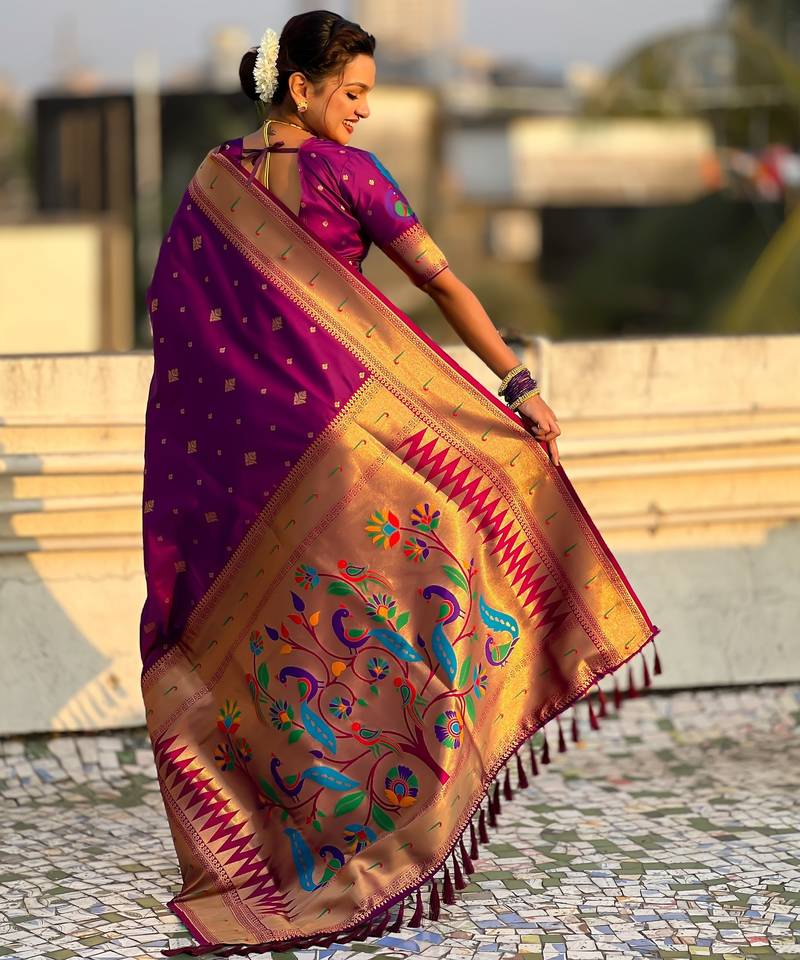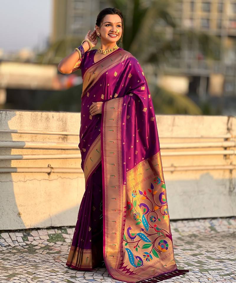 Wine color paithani silk fabric beautiful traditional rich saree