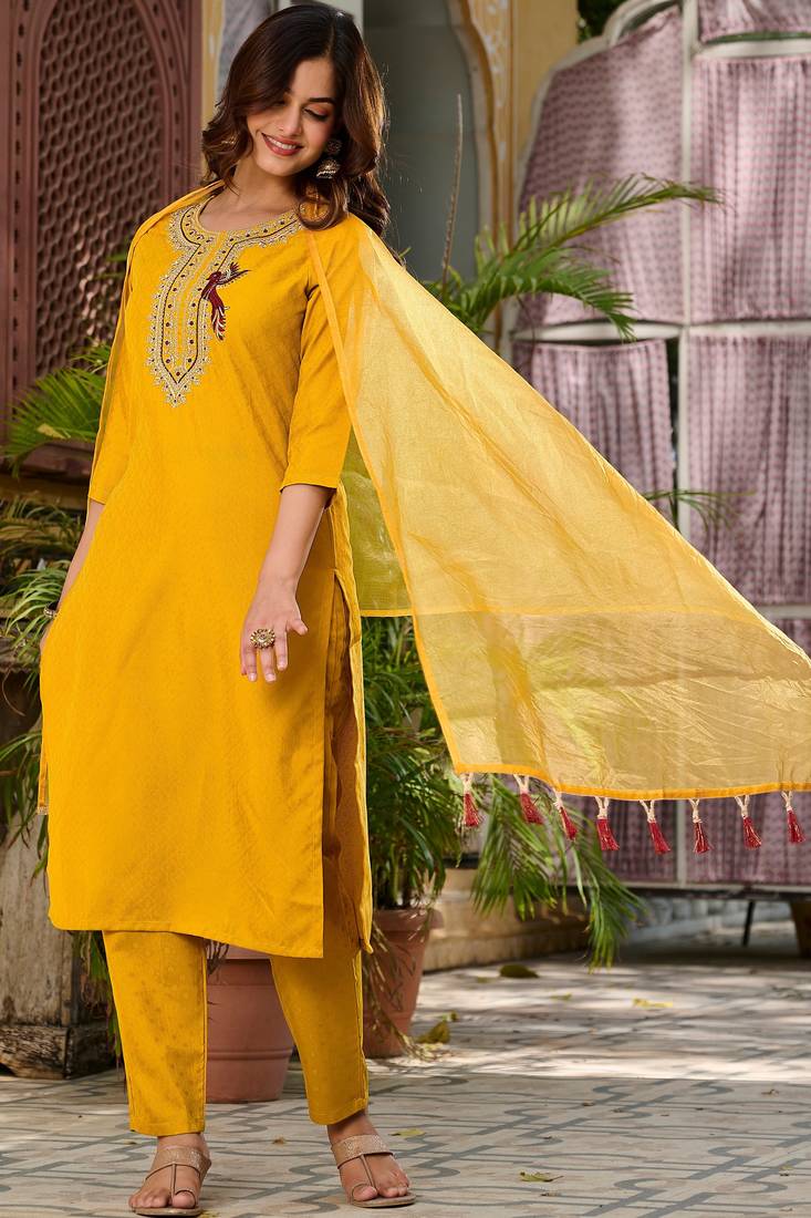 | Product Name | Yellow Color Smart And Trendy Viscose Rayon Color Casual Kurta Set | |