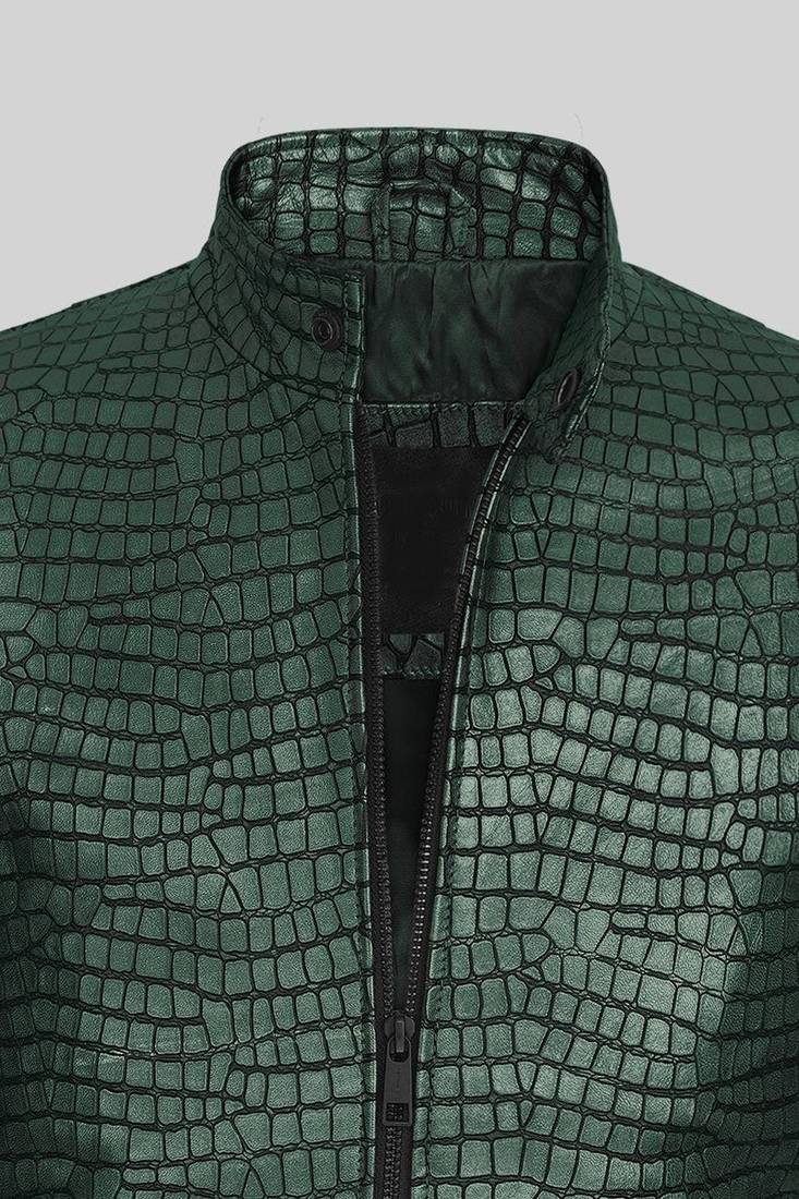 | Product Name | Classic Green Leather Jacket Pure Lambskin Green Crocodile Texture Stylish | |