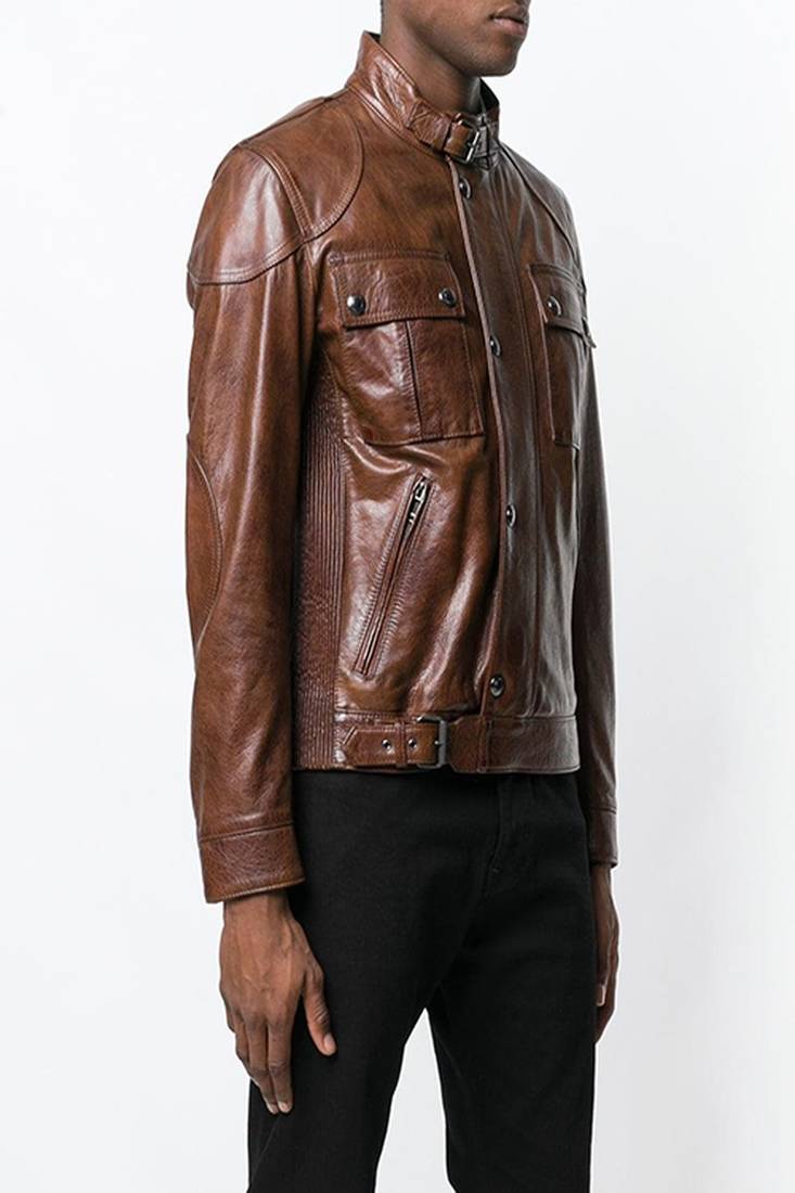 | Product Name | Stylish Brown Lambskin Leather Jacket Slim Fit Moto Style Button Jacket | |
