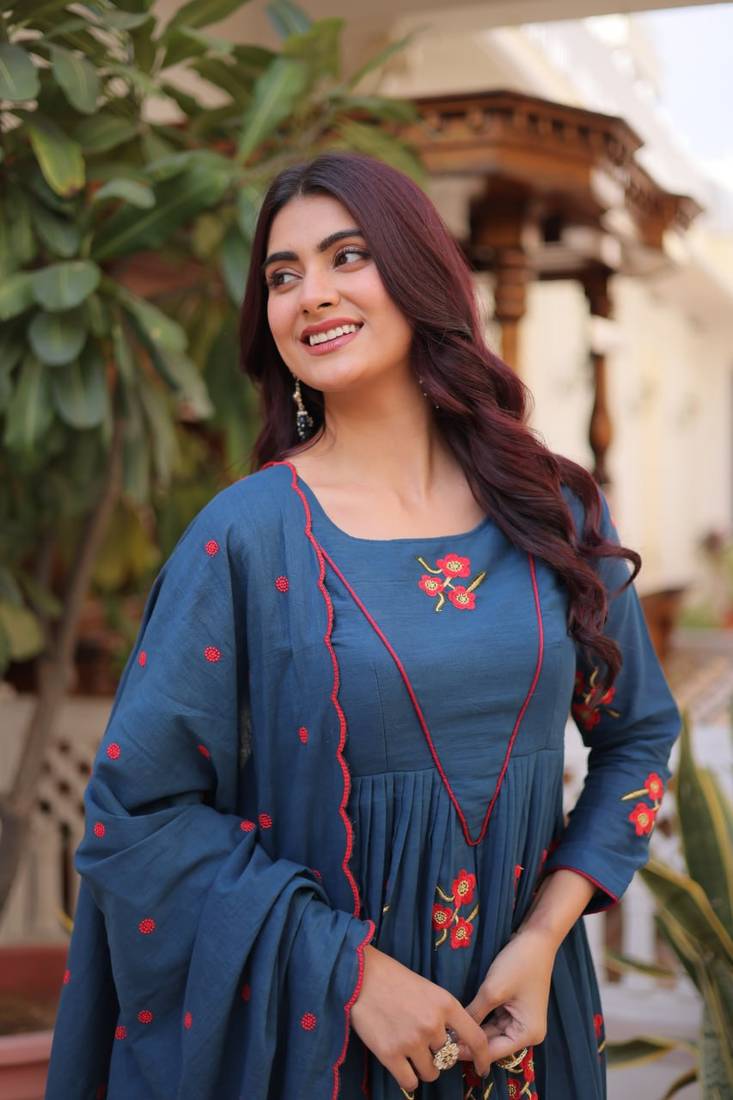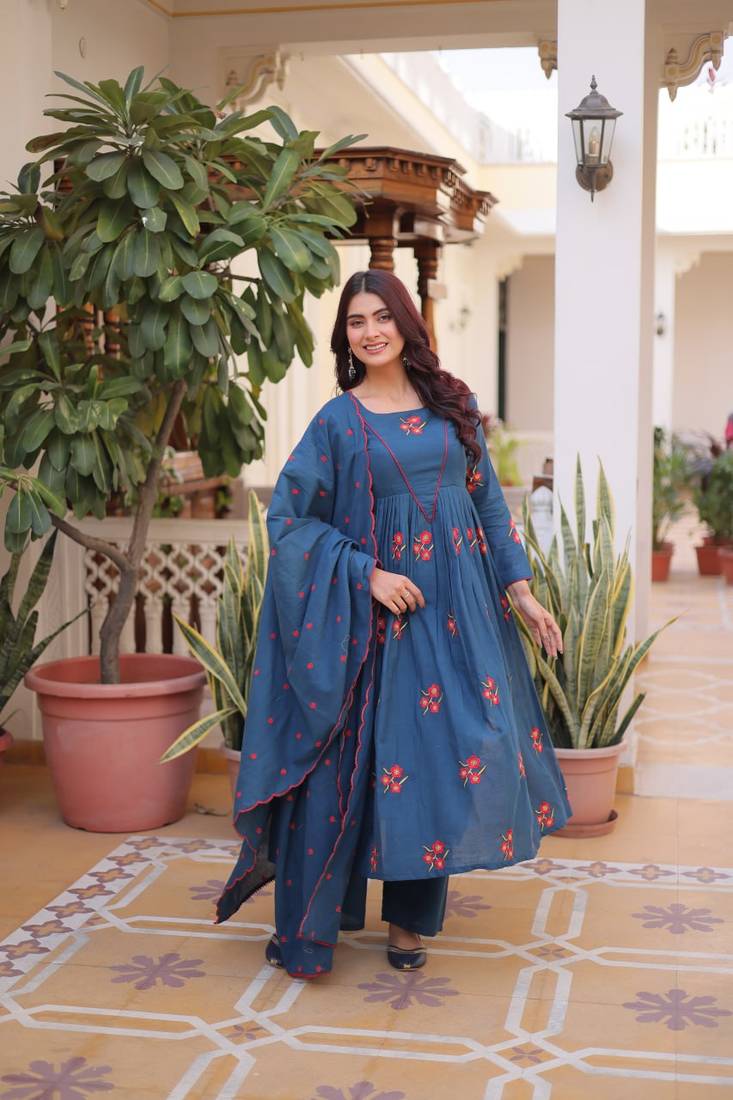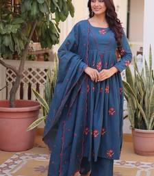 | Product Name | Blue Cotton With Embroidered Work Stitched Kurti Pant & Dupatta Set | |
