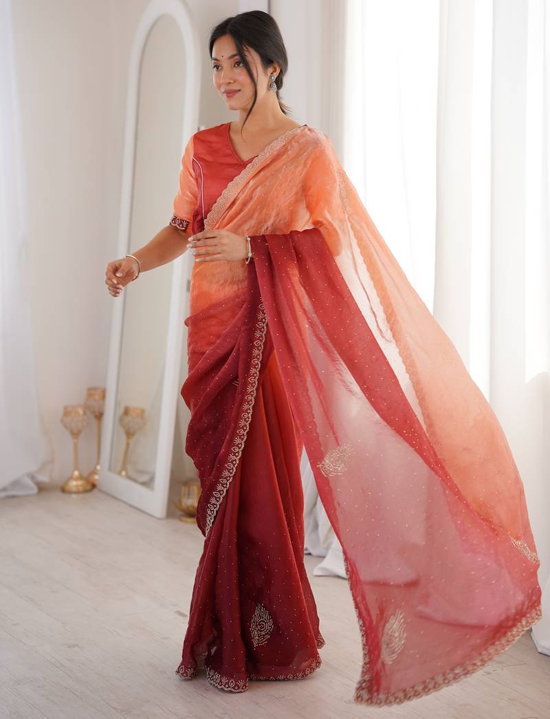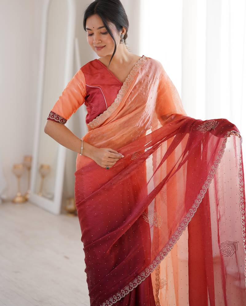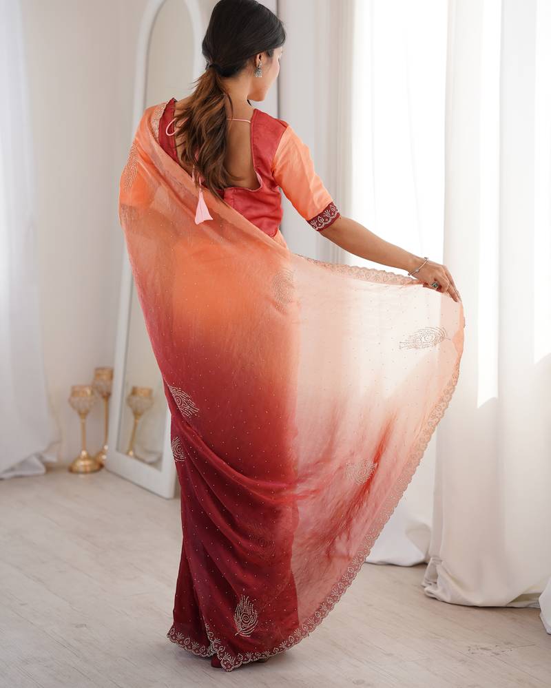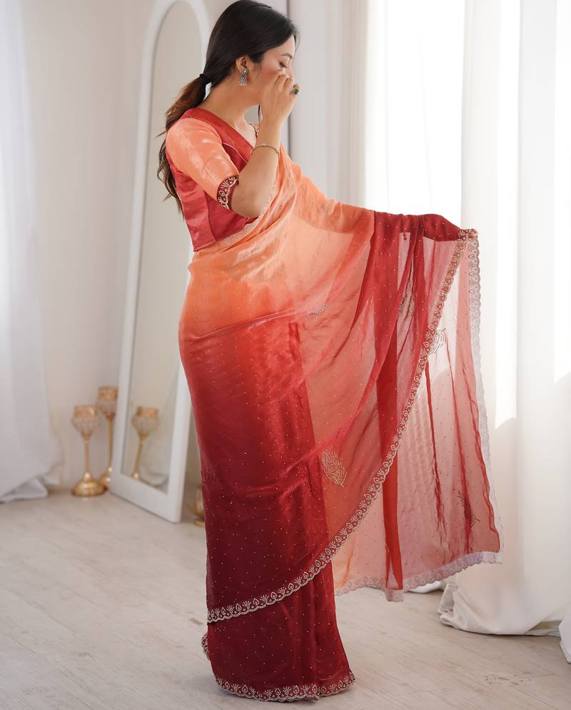 Ombre gradient saree with intricate embroidery lace border | premium ethnic saree for wedding, party & festive wear