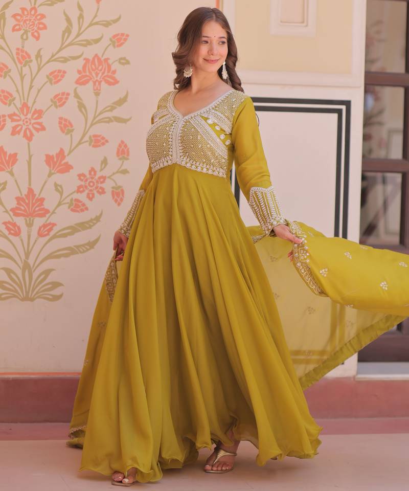 Women georgette rich & sequins embroidered work gown & kurta set for women stitched