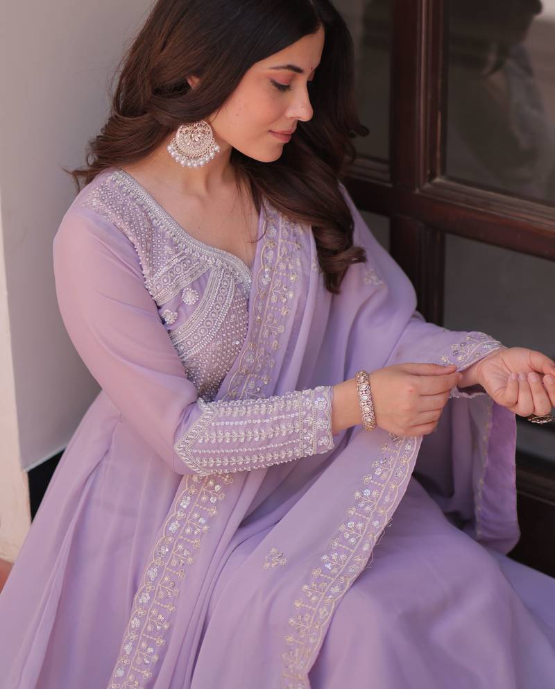 Women georgette rich & sequins embroidered work gown & kurta set for women stitched