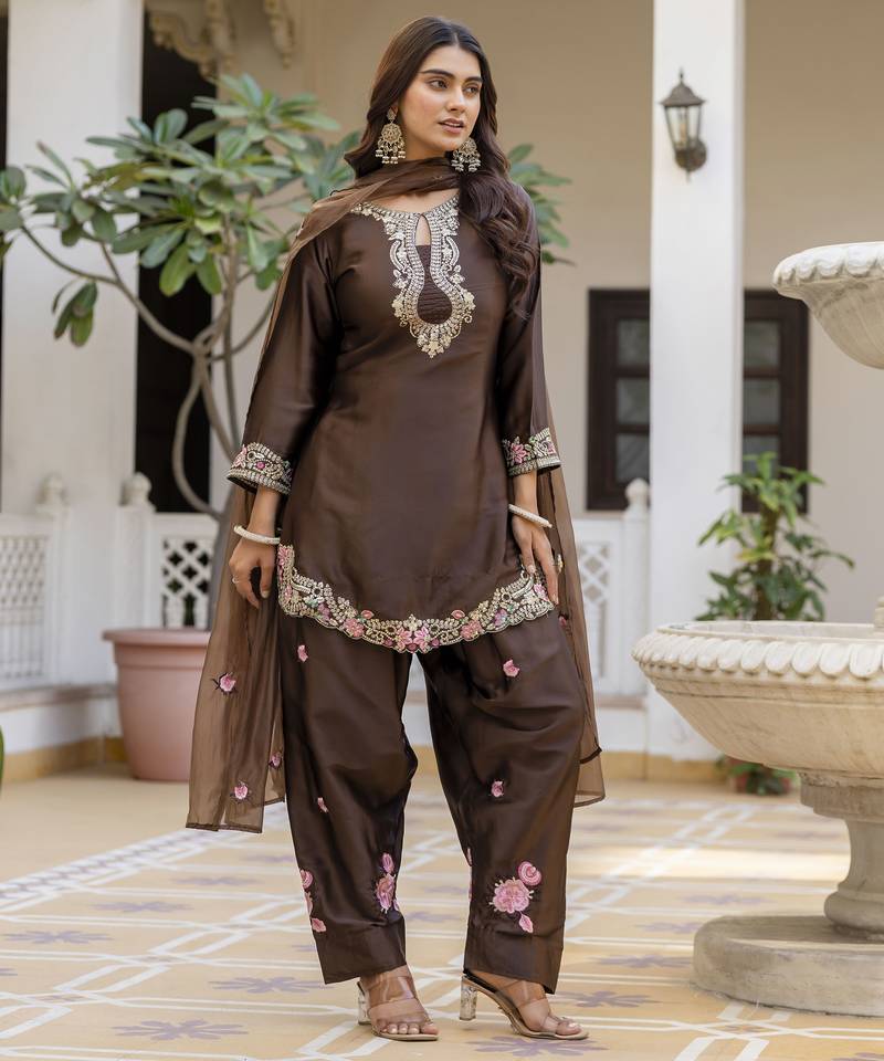 | • | Kameez | : | Color- Brown / Fabric- Satin |