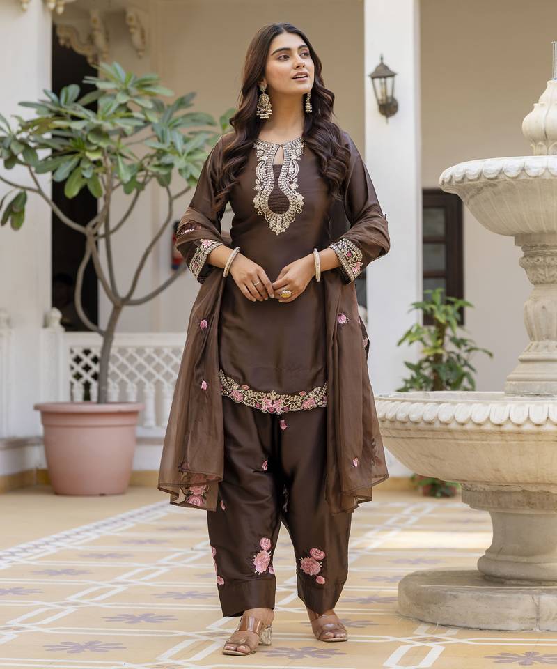 | Product Name | Embroidered Japan Satin Stitched Kurta Set With Dupatta & Patiyala Pant | |