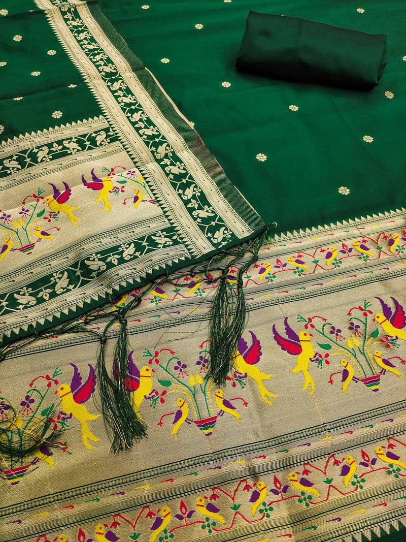 | Product Name | Bottle Green Soft Banarasi Silk Pure Zari Woven Design Dress Material | |