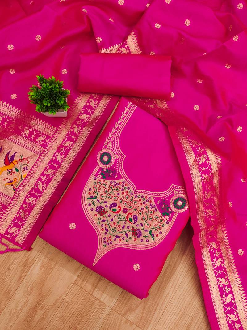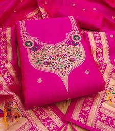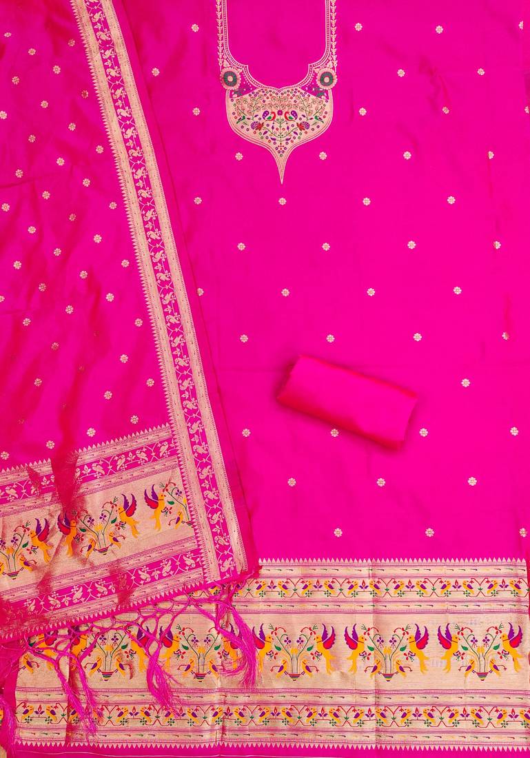 Pink soft banarasi silk pure zari woven design dress material unstitched