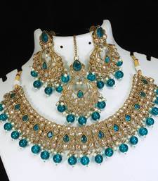 | Product Name | Designer Rama Green Mehendi Gold Plated Ad/Zircon Work Polki Necklace Jewelry Set With Maangtika | |