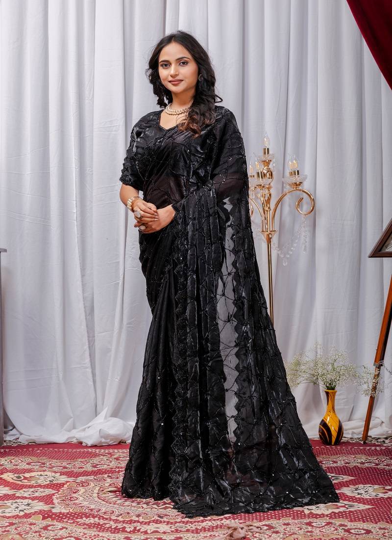 | Product Name | Black Color Sequins,Embroidery With Beads Work Satin Silk Saree | |