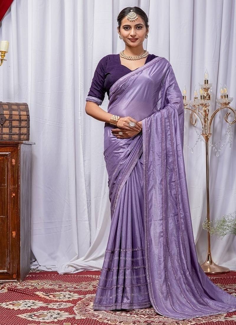 | Product Name | Lavender Color Zari Embroidery Hotflix Diamond Work Vichitra Silk Saree | |
