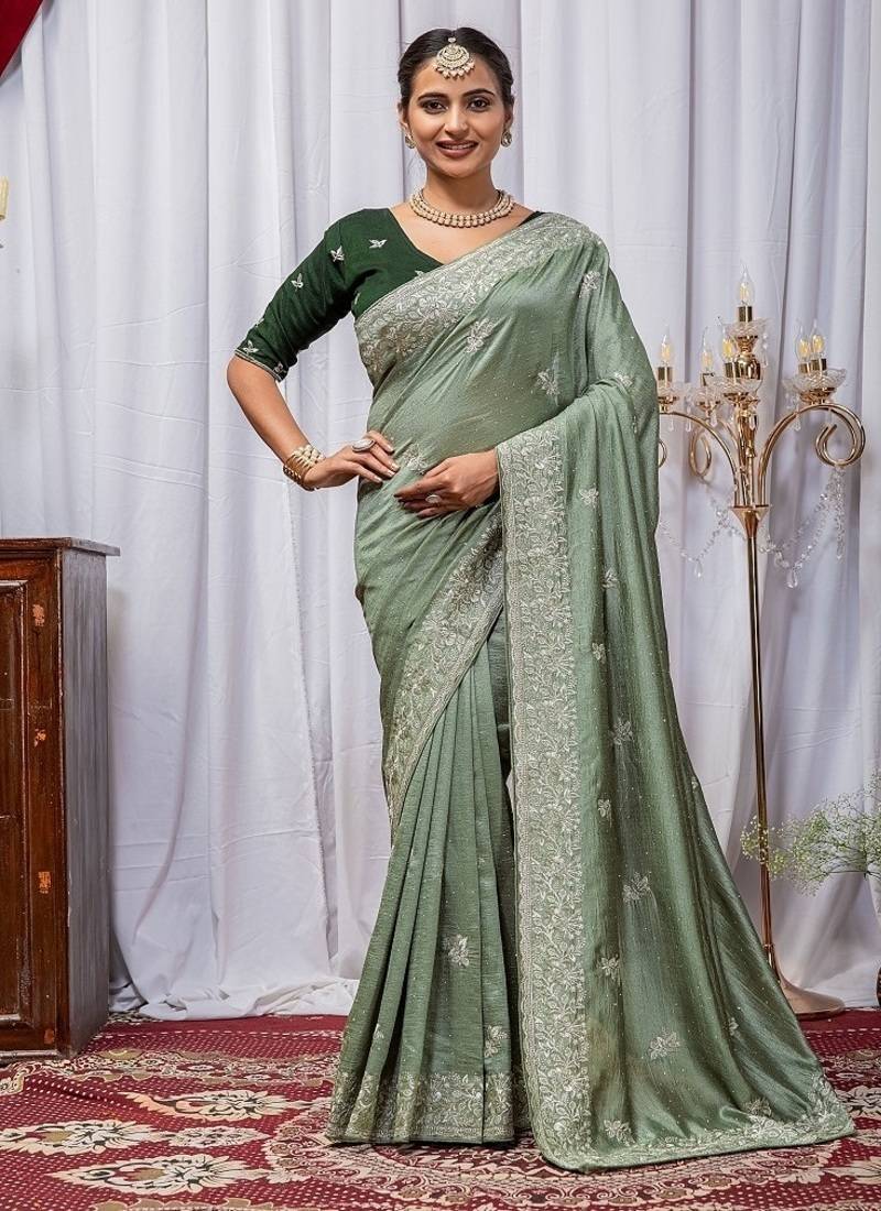 | Product Name | Light Green Color Zari Embroidery Hotflix Diamond Work Vichitra Silk Saree | |