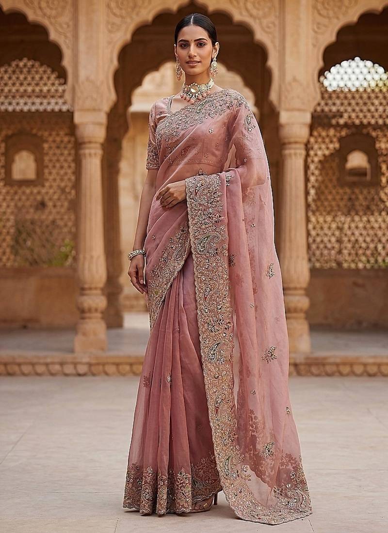 | Product Name | Onion Pink Color Patch Embroidered,Dori,Multi Thread And Zari With Sequins And Zircon Diamond Work Silk Saree | |