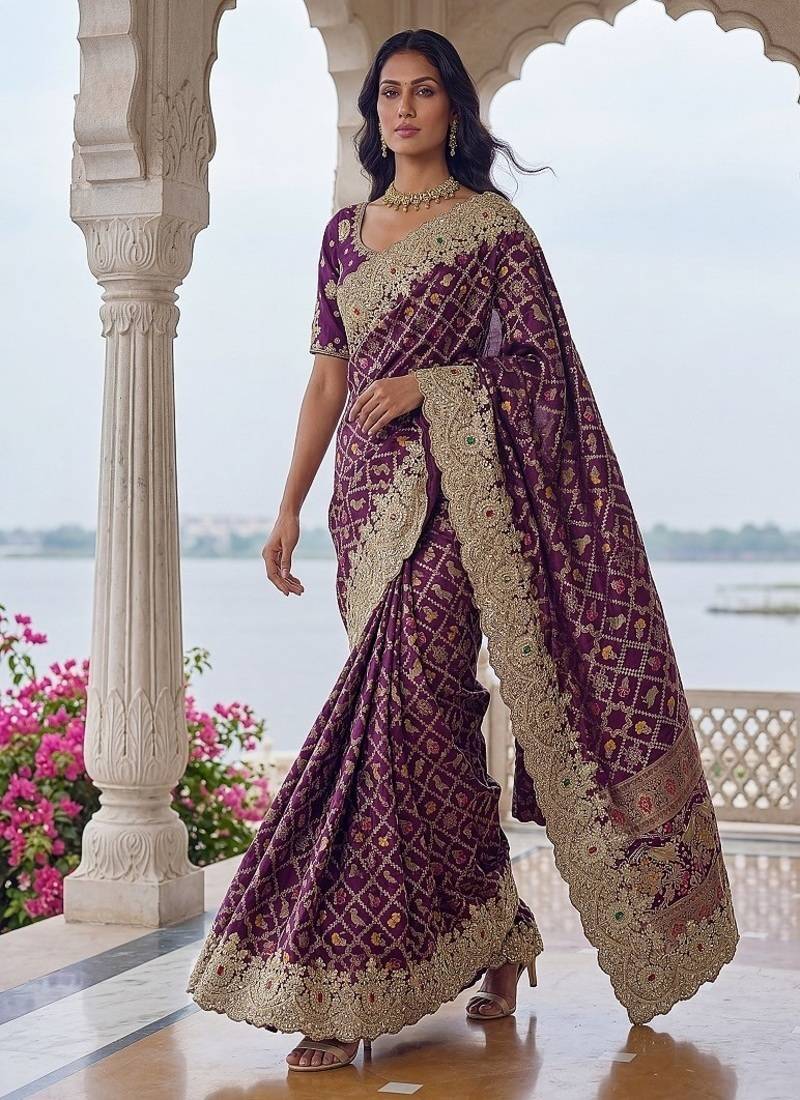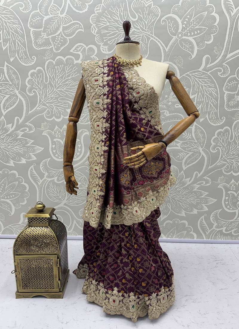 | Product Name | Plum Color Embroidered Lace,Dori,Multi Thread And Zari With Sequins And Zircon Diamond Work Banarasi Silk Saree | |
