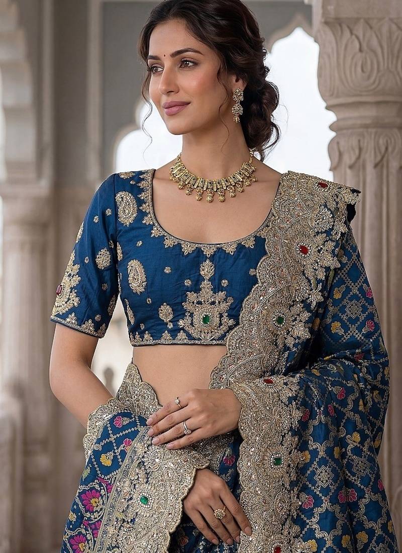 | • | Blouse | : | Color- Teal / Fabric- Banarasi Silk |