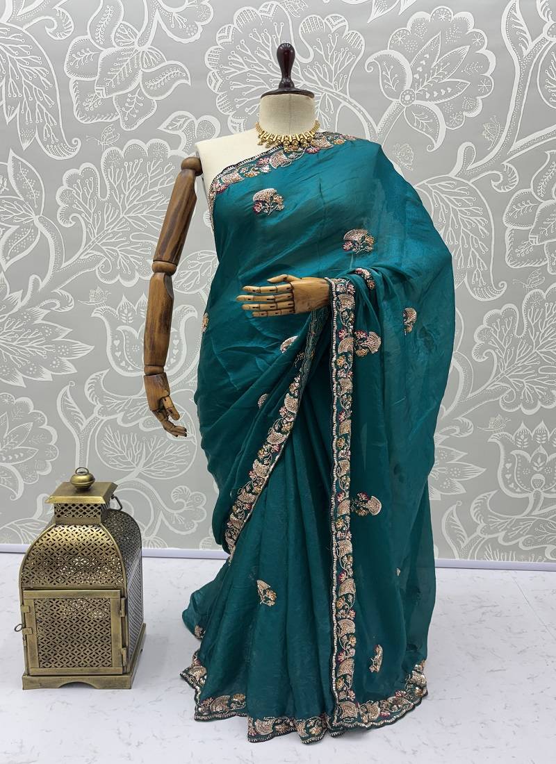 | Product Name | Turquoise Color Beads,Cutdana,Sequins And Thread Work Chiffon Silk Saree | |