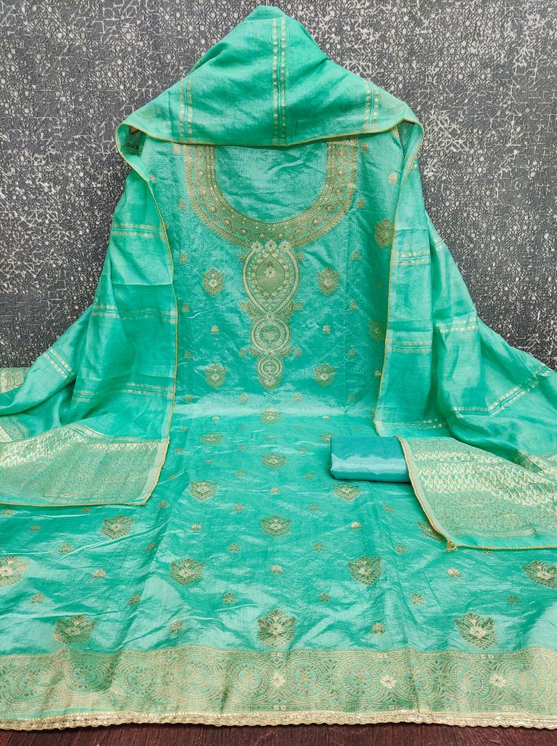 | Product Name | Elegant Green Woven Zari Unstitched Salwar Suit With Dupatta | |