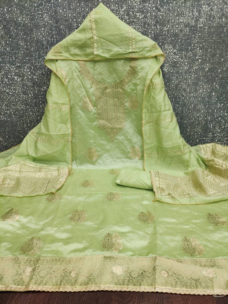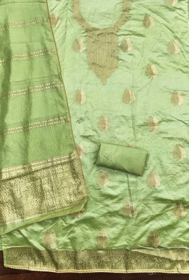 | Product Name | Elegant Light Green Zari Woven Unstitched Salwar Suit With Dupatta | |