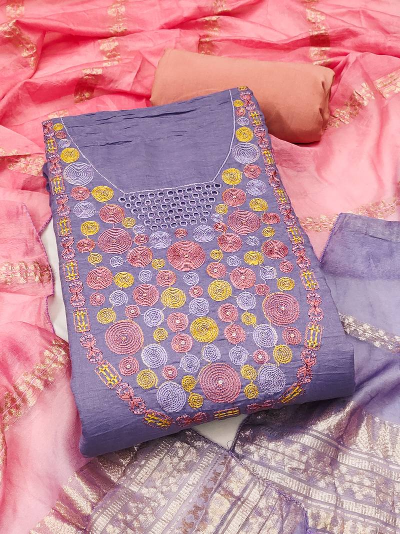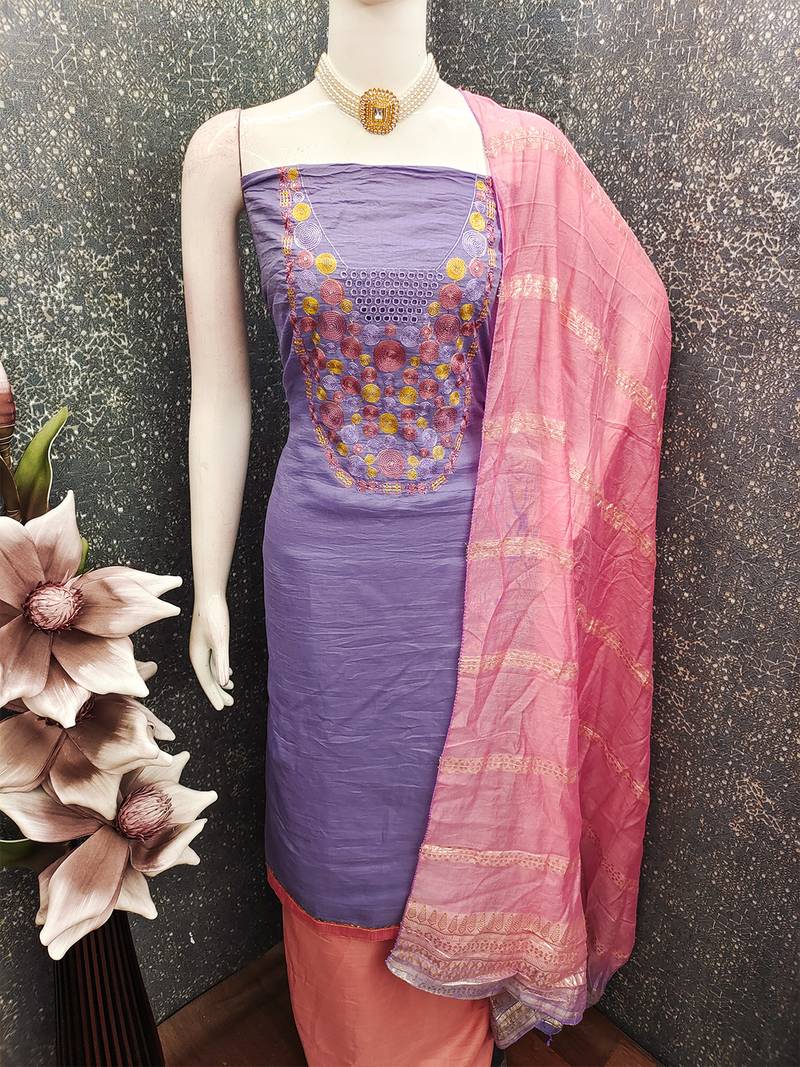 Elegant parampara cotton embroidered dress material with dyable jacquard dupatta unstitched