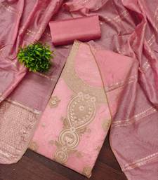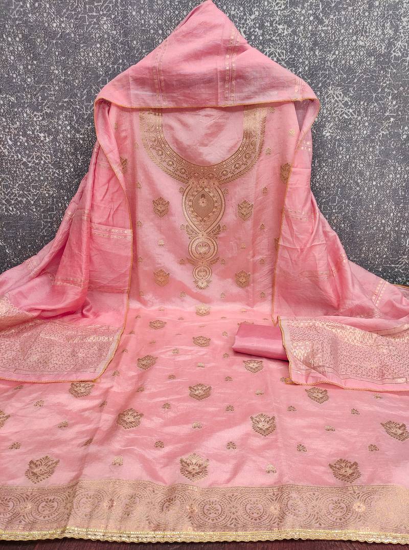 Elegant pink woven zari unstitched salwar suit with dupatta