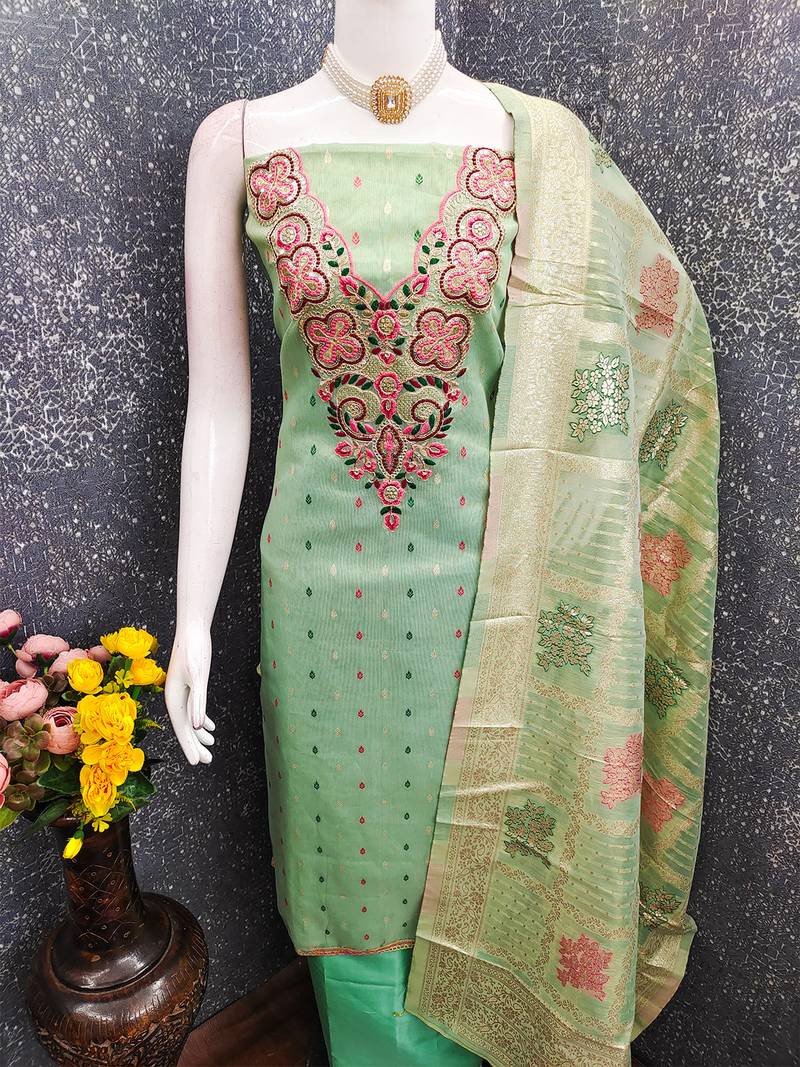 | Product Name | Elegant Simmer Butti Embroidered Dress Material With Jacquard Dupatta & Santoon Bottom | |