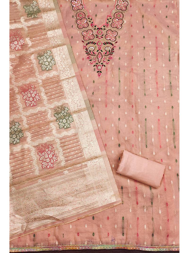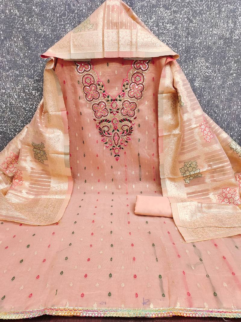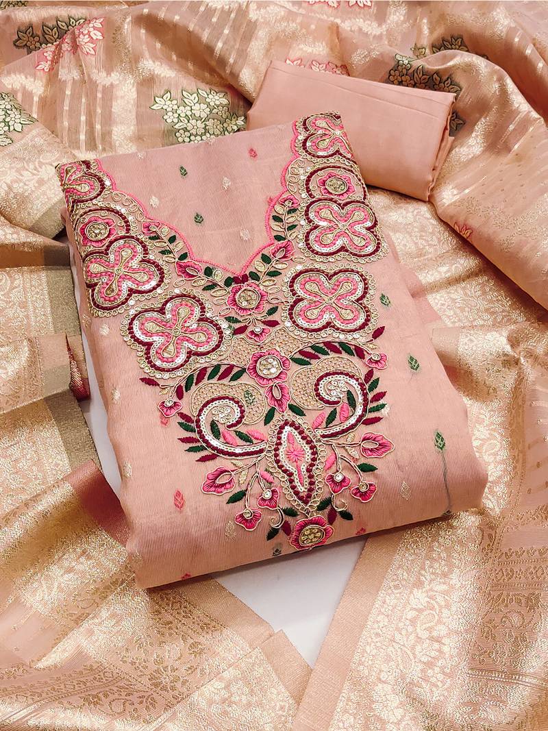 Elegant simmer butti embroidered dress material with jacquard dupatta & santoon bottom unstitched
