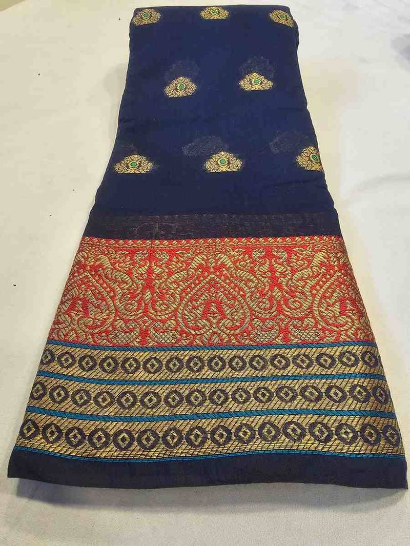 | • | Saree | : | Color- Navy Blue / Fabric- Cotton |