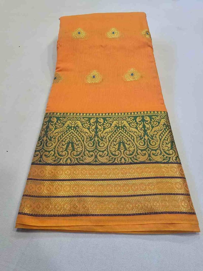 | • | Saree | : | Color- Orange / Fabric- Cotton |