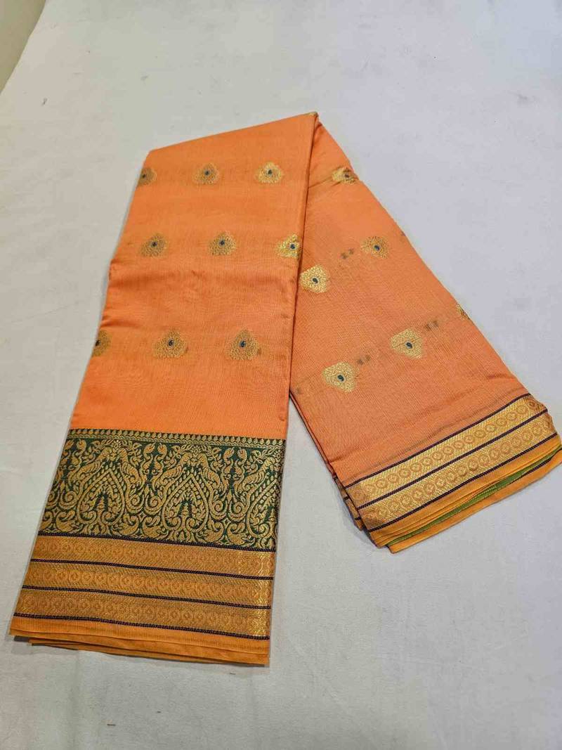 | Product Name | Orange Jacquard Cotton Blend Golden Zari Butta Butti Woven Maheshwari Saree With Blouse Piece | |