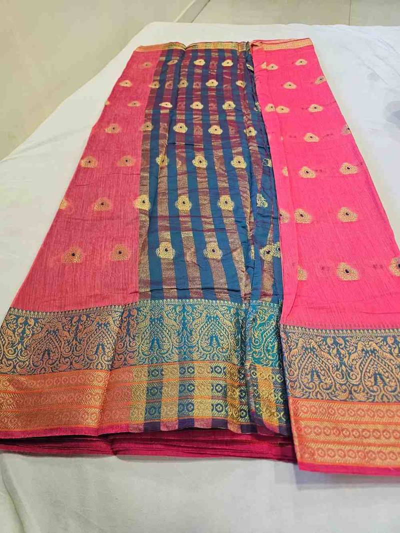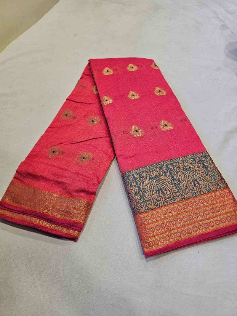 | • | Saree | : | Color- Pink / Fabric- Cotton |